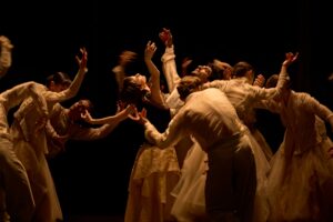 Karen Azatyan als Hauptmann und Pablo Octávio als Dancaire, sowie die Tänzer/innen McKhayla Pettingill, Inna Bilash, Breanna Foad, Daniela Gómez Pérez, Sujung Lim, Caroline Perry, Sean Bates, Chandler Dalton, Marià Huguet, Erik Kim und Mlindi Kulashe zeigen erneut die hervorragende Qualität des Zürcher Ballett Ensembles.