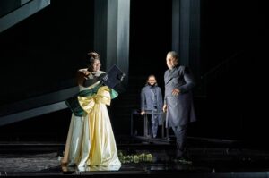 Don Carlos, die wohl dunkelste Oper von Giuseppe Verdi, wurde 1867 in Paris uraufgeführt. Damals war Paris die Kulturhauptstadt und jeder Komponist versuchte, dort Fuß zu fassen. Dies ist auch der Grund, warum die Originalsprache des Werkes Französisch ist. Doch bereits ein halbes Jahr später wurde der Text ins Italienische übersetzt und in Bologna mit fünf Akten aufgeführt. Erst nach großen Kürzungen entstand dann 1884 die vieraktige Fassung für die Scala in Mailand. (Rezension der Premiere vom 16.10.21)