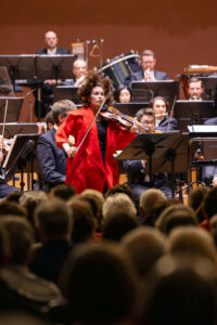 Den wohlverdienten Applaus verdankte die Solistin mit einer originellen Zugabe. In der Coda des zweiten Satzes lässt der Komponist für einen kurzen einen Moment ein Kinderlied aufleuchten: „Der Esel ist ein dummes Tier, der Elefant kann nichts dafür, Iah, Iah…“ Im Original ein Kanon mit einem Spruch von Wilhelm Busch. Patricia Kopatchinskaja forderte nun das Publikum auf, zusammen mit ihr diesen Kanon zu singen. Zuerst sang sie gemeinsam mit dem Dirigenten und Antoine Lederlin, erstes Violoncello und der Konzertmeisterin Friederike Starkloff, diesen Kanon vor. Das Publikum wurde für den gemeinsamen Kanongesang in Gruppen aufgeteilt und so entstand ein Singen des gesamten Publikums. Eine humorvolle Idee, welche viel Beifall von allen Seiten erhielt.