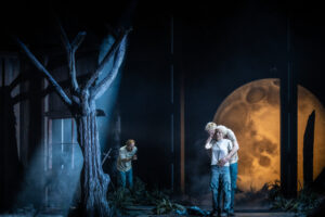Es gab lebhaften Applaus für die hervorragenden Sängerinnen und Sänger, den Dirigenten und das brillante Gürzenich-Orchester, aber kräftige Buh-Rufe für das Regieteam im ausverkauften Staatenhaus im Kölner Rheinpark. Man erlebte eine düstere Dystopie, bebildert mit bühnengroßen Videoeinblendungen von Bildern von Überwachungskameras, später von Ultraschallfilmen sich bewegender Embryonen und allerlei medizinischen Überwachungsmonitoren, die man sonst auf Intensivstationen findet. (Rezension der Premiere vom 29. März 2026)