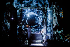 Im Teatr Wielki beginnt „Die Frau ohne Schatten“ nicht unmittelbar mit dem bekannten dreifachen Keikobad-Motiv. Dröhnend-rauschende Klänge, darin tropfendes Wasser, ertönen im dunklen Saal und bereiten die Stimmung für das folgende auch psychologisch düstere Geschehen. Vor dem Spiegel eines modernen Badezimmers erscheint die Kaiserin, mit einer Rasierklinge sich selbst verletzend, wie die im Waschbecken verlaufenden Bluttropfen, die per Projektionen (Bartek Macias) auf der Spiegelfläche sichtbar werden, erzählen. Das nun tief erschütternde Keikobad-Motiv lässt bereits erahnen, worin dieses autodestruktive Verhalten gründen mag und wie geschädigt und schädigend die Beziehung zwischen dem Geistervater und seiner Tochter ist. Mariusz Treliński nähert sich dem Stoff über einen psychologischen Zugang, der nicht nur die Tatsache aufgreift, dass Hofmannsthal neben weiteren Quellen auch Studien Pierre Janets sowie zahlreiche Gedanken aus den tiefenpsychologischen Arbeiten Sigmund Freuds und Carl Gustav Jungs als Inspiration wählte, sondern auch auf sensible und differenzierte Weise die Psyche der beiden zentralen Frauengestalten der Oper in den Vordergrund rückt. „Die Frau ohne Schatten“ wird bei Treliński zu einer Studie der weiblichen Psyche anhand einer schwer depressiven Frau, der Kaiserin, die unter ihrem übermächtigen Vater leidet, welcher sie mit einem – wohl ebenso psychologisch zu deutenden – Fluch belegt hat und in seiner Kontrolle hält. Die Amme, deren Aufgabe es wäre, sie zu beschützen, verabreicht ihr Medikamente, die allerdings weniger ihrer Heilung dienen, sondern sie vielmehr betäuben und noch tiefer in die Depression stürzen. Auch die Beziehung zum Kaiser, in sich dysfunktional und von mangelndem Verständnis geprägt, leidet unter der kranken Psyche der Kaiserin. Anstatt sich seiner Frau zuzuwenden und ihr zu helfen, begibt er sich, gelangweilt von ihrer Apathie, lieber auf eine dreitägige Jagd. Doch nicht nur die Kaiserin, auch die Färberin wird von Treliński als psychisch instabile und in ihrer Beziehung leidende Frau gezeichnet, die sich von ihrem Mann nicht gesehen fühlt und aufgrund der stark divergierenden Vorstellungen bezüglich der gemeinsamen Lebensgestaltung vorerst rasch bereit scheint, ihren Schatten zu verhandeln – mit Aussicht auf eine unbeschwerte, freie Zukunft, nicht mehr in Armut, sondern umgeben von Luxusgegenständen und einem schönen Liebhaber. Dass dies aber mehr einer erkrankten Psyche als ihrem bewussten Sehnen zuzuschreiben ist, wird später deutlich, wenn auch sie in einem suizidalen Verhalten den einzigen Ausweg aus dem nur vorgegebenen Verkauf ihres Schattens und dem daraus folgenden Bruch mit Barak sieht.